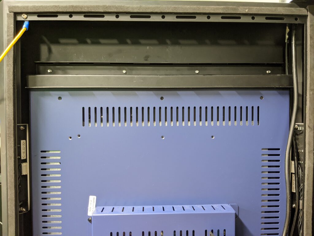 Next remove the power bricks and cables to gain access to the mounting bar holding the monitor in place as well as the cables plugged into the monitor. (Note where the cables were all plugged in to make sure when reinstalling the unit works as intended. )